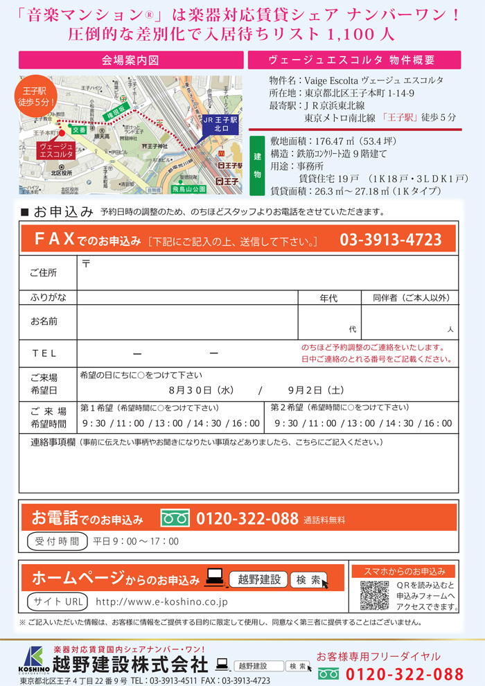 FAXでのお申し込み : 03-3913-4723 [越野建設]