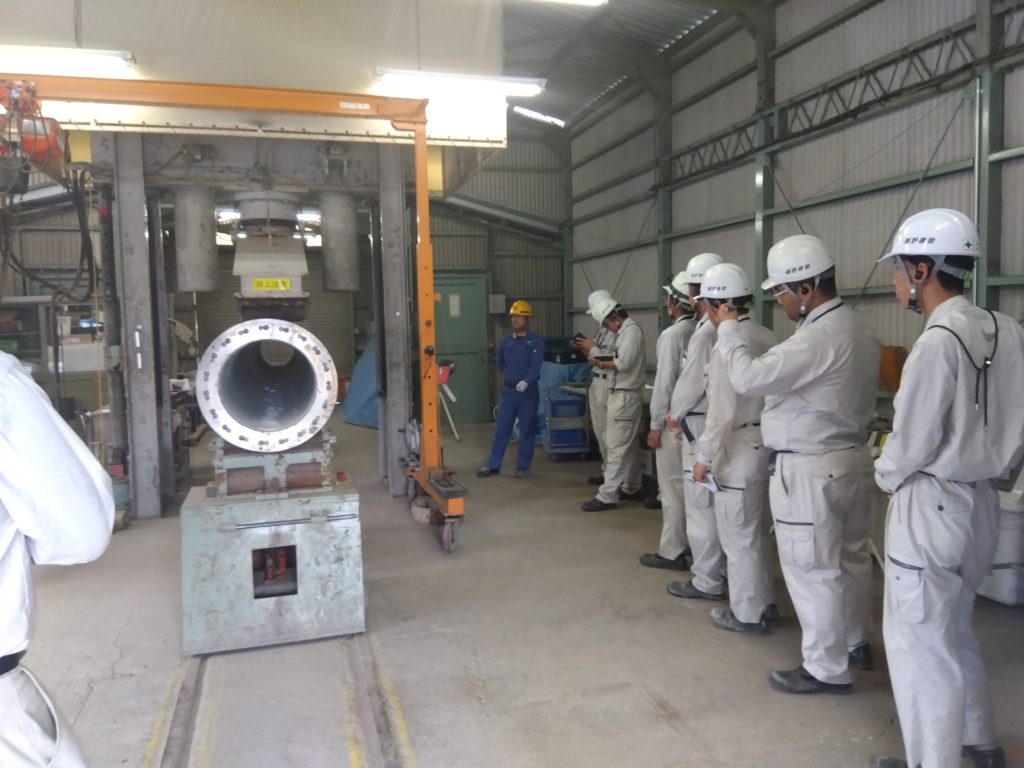 今回は建築資材の一つであり、建物における構造の重要な要素を受け持つ杭の生産工場を弊社の若手現場監督13名にて見学してきました。