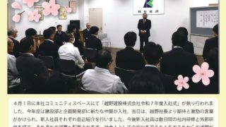 越野マンスリー 『Koshino monthly 4月号』新たに6人の仲間が加わりました!令和7年度入社式開催! 『Koshino monthly(越野マンスリー)』は越野建設の最新情報や、建築に関するお役立ち情報などをお客様にお届けする情報紙です。 【今月の記事】 ・新たに6人の仲間が加わりました!令和7年度入社式開催! ・読売新聞に「音楽... 2025.04.24 越野マンスリー