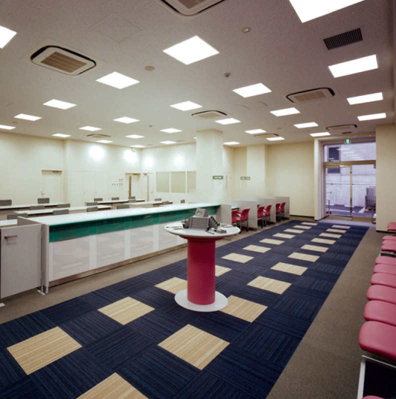 常盤台支店は昭和30年開業以来、今回で3度目の改築となりますが、当社では初代、2代目の店舗に引き続き、施工を担当いたしました。落ち着いた街並みを形作るシックな外観と明るい色調の店内のコントラストがとても素敵な建物です。