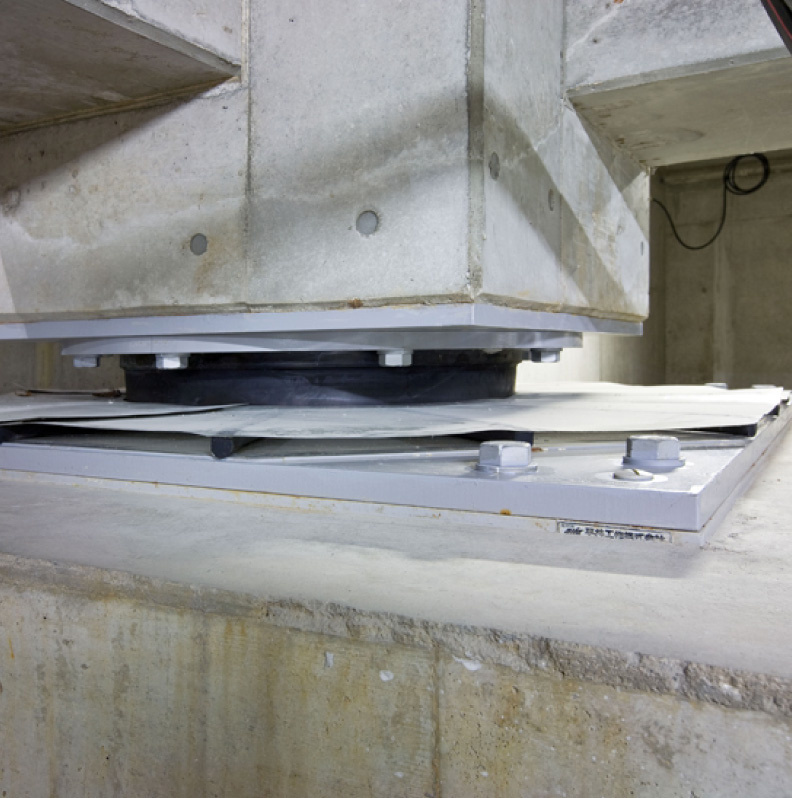 企画段階で免震構造導入コストとメリットを綿密に検討した結果、在来工法では困難だった13階建を実現しました。ご予約により免震装置の見学も受け付けています。
