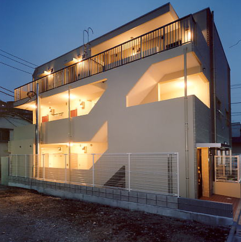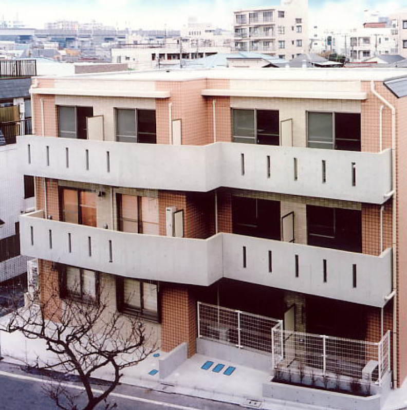 長く地域に愛され、利用されてきた銭湯の建替え、オーナールーム付マンションです。数種類のタイルと打ち放しコンクリートを組み合わせた外観は、周囲の古い住宅に調和しつつ、街に明るいイメージを吹き込みました。